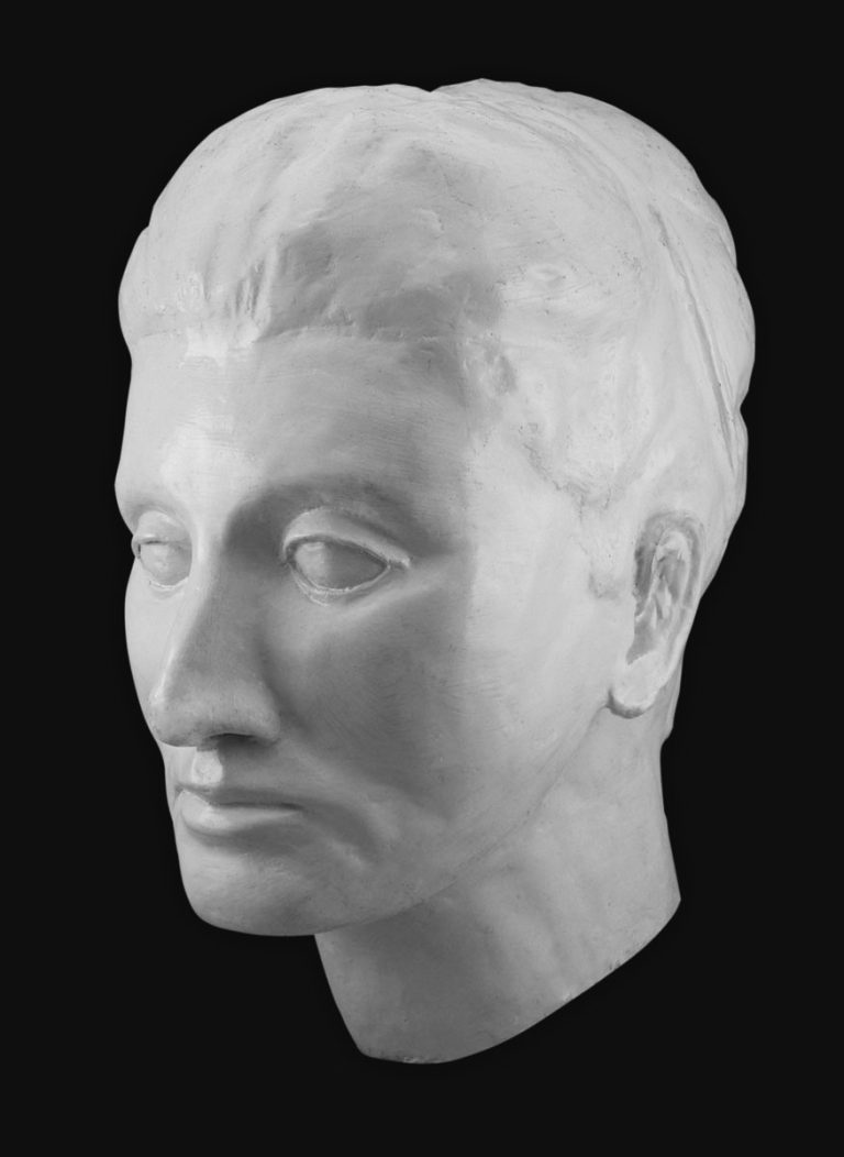 This sculpture reflects a classical, study-driven approach to portraiture, emphasizing structure, proportion, and subtle anatomical accuracy over stylization. Modeled in clay and cast in plaster, the piece demonstrates a disciplined additive process, where primary forms are carefully established and refined into secondary planes, particularly visible in the treatment of the brow, cheekbones, and jawline. The surface retains a soft, hand-worked quality, with gentle tool marks and smoothed transitions that capture the tactile nature of the clay while allowing light to articulate the form through nuanced highlights and shadows. Conceptually, the work reads as an academic exploration of human form and volume, focusing on the balance between realism and abstraction; rather than pursuing hyper-detail, it prioritizes mass, proportion, and the underlying geometry of the head, resulting in a timeless, contemplative study that highlights both technical control and a sensitivity to sculptural presence.