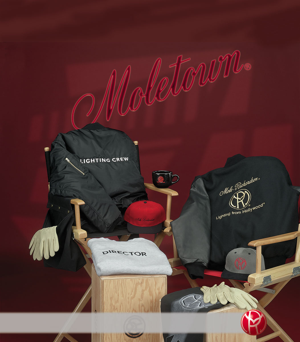 The images above were composed and photographed with the purpose of creating hero/feature images for marketing brochures and sales catalogs. The top image is the cover image for a power distribution catalog. Minor Photoshop work was done to clean up and color-correct the image. The lower left image is a catalog cover for motion picture on-set apparel. Photoshop was used to clean up the image and create the background, and the logo was created in Adobe Illustrator. The lower right image was the feature image for over a decade on a motion picture lighting catalog. I used Photoshop for touch-ups, color correction, and creating the background.